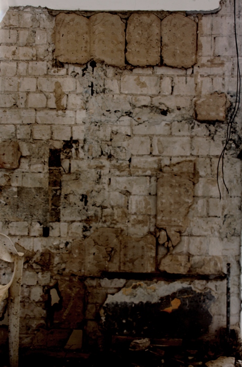 עם טביעות כפות ידיים ושמות ותאריך, וחבלי כביסה, ונזילה מהגג השטוח, וחדר של