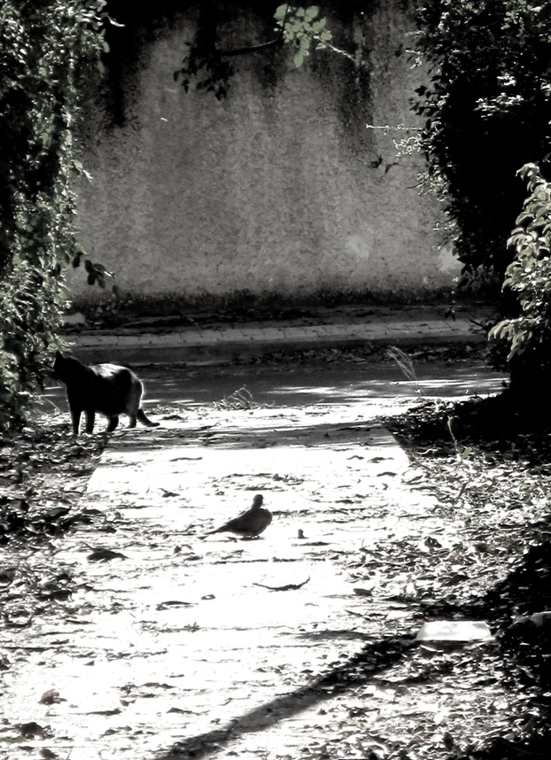 באילנית שקופצת שם לפעמים. אני יוצאת  לחצר וגוערת בה ששקט כבר.